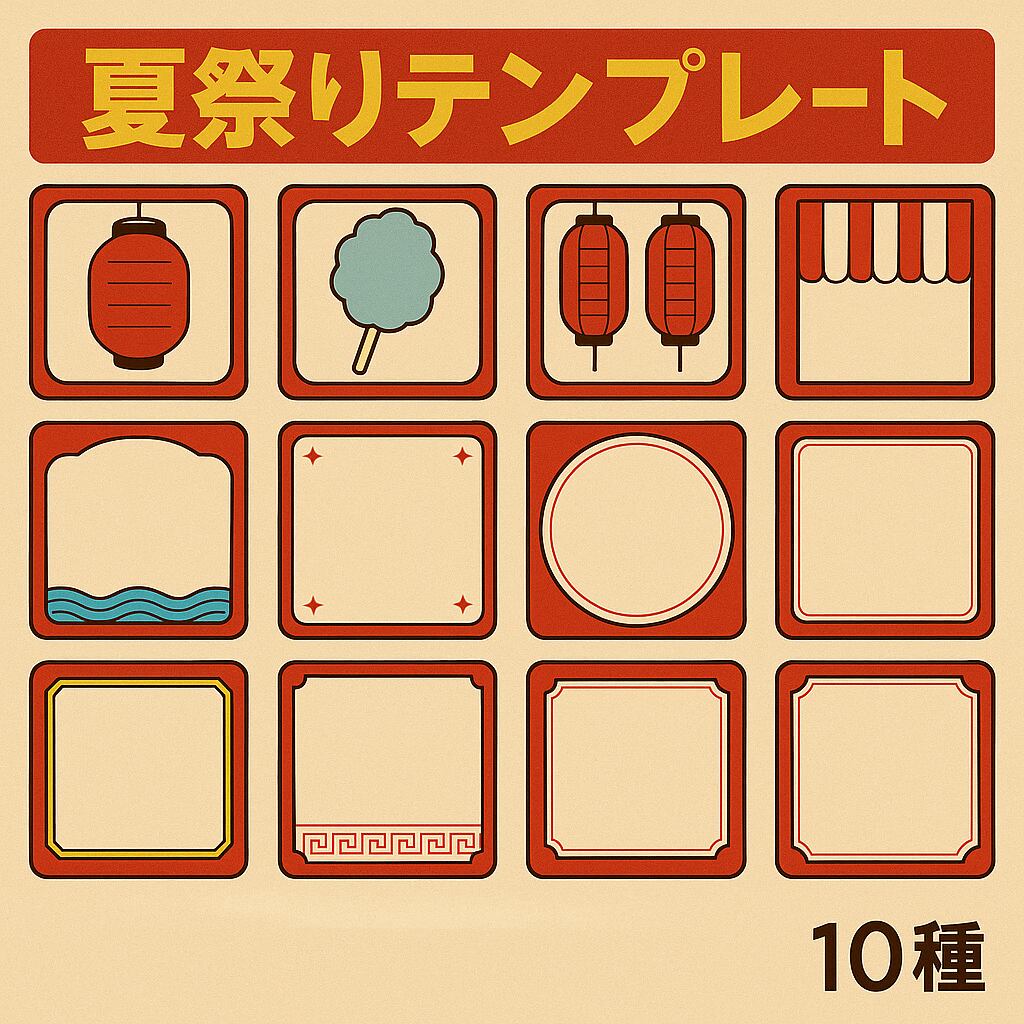 夏祭りレトロSNSテンプレート 10種セット(1080×1080px PNG)