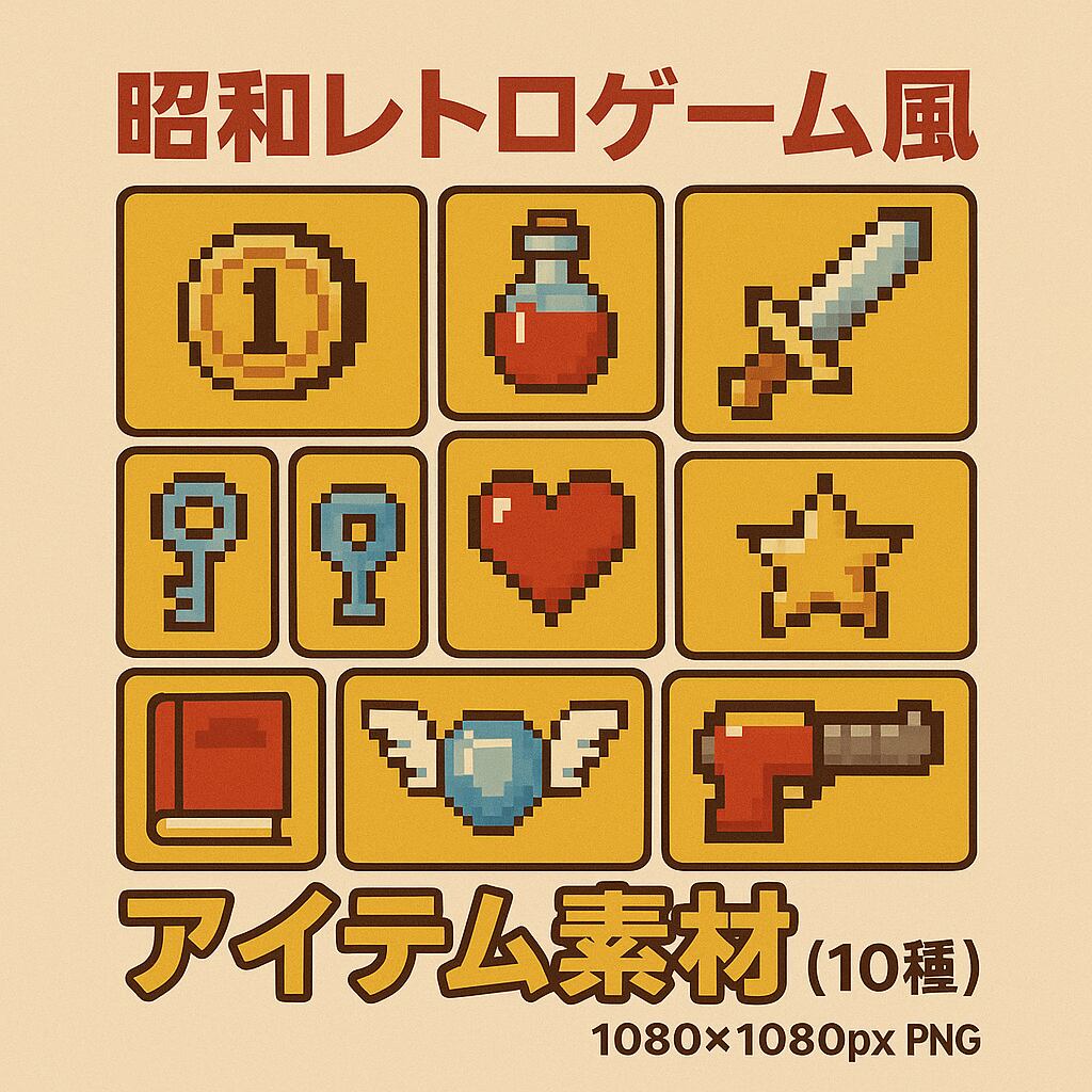 昭和レトロゲーム風アイテム素材セット(10種)